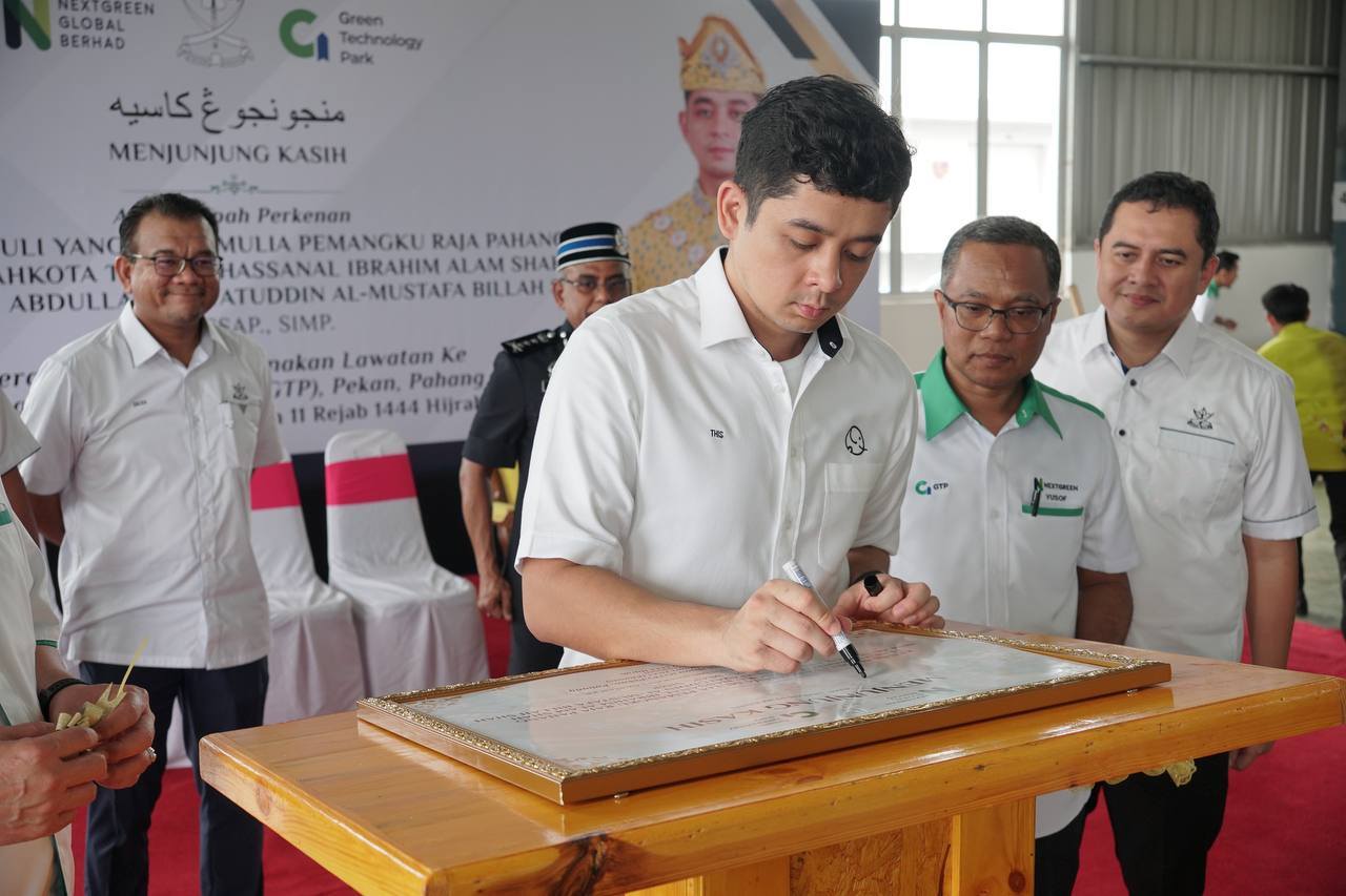 The community of Paloh Hinai celebrated as the Crown Prince of Pahang, Tengku Mahkota Tengku Hassanal Ibrahim Alam Shah, visited the Green Technology Park (GTP) developed by Nextgreen Global. Accompanied by Pahang State Government members, He toured Phase 1A (10,000MT woodfree paper) to witness Nextgreen’s patented PRC-RBMP technology, a hybrid process using oil palm waste. The Prince praised the GTP’s sustainable economic development and its positive impact on local communities. He emphasized the need to promote Malaysia’s eco products in both local and international markets.