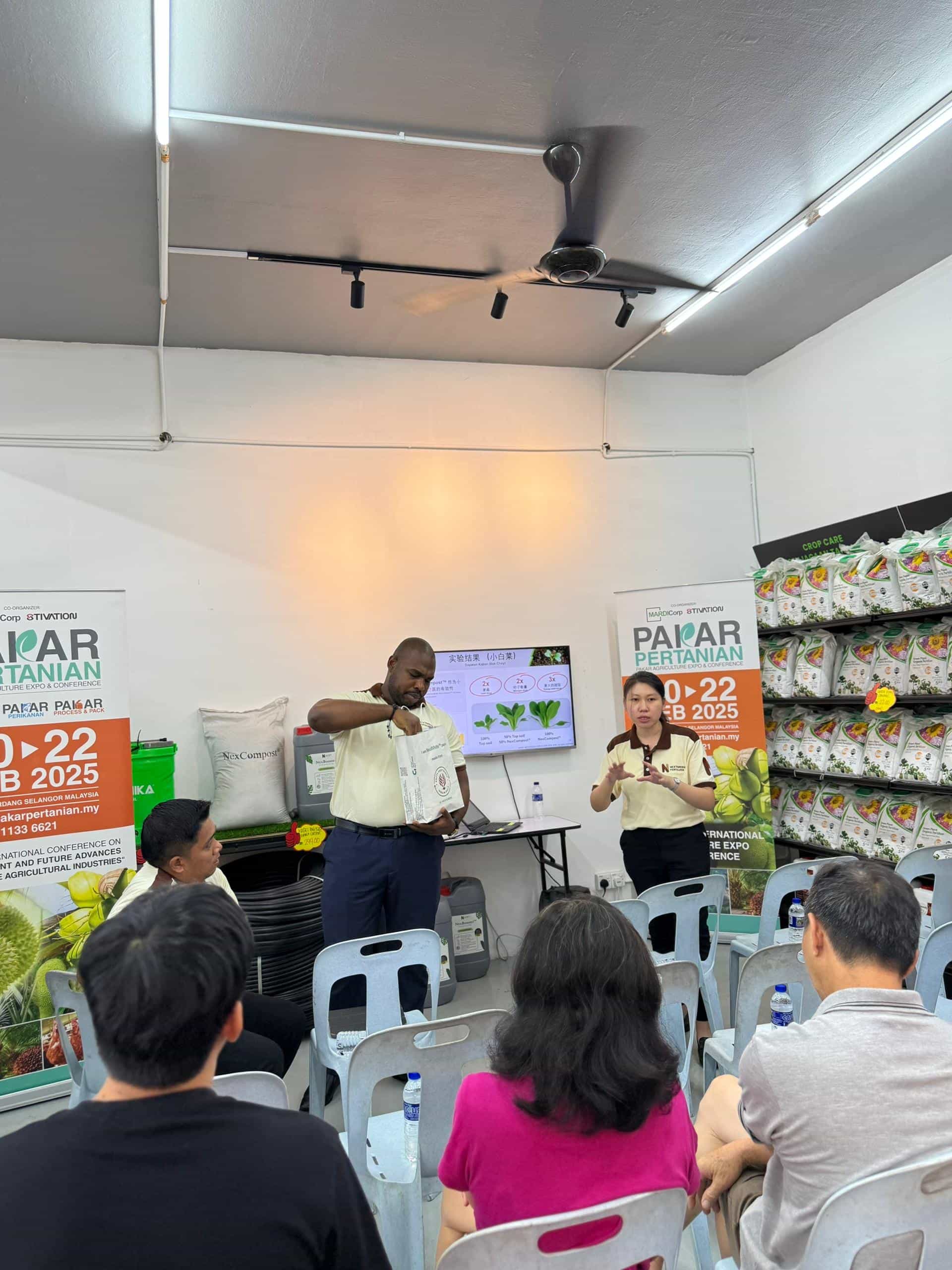 During the session, we introduced our two flagship products: NexBooster™ and NexCompost®. NexBooster™ is formulated from recovered pulp solution residue, while NexCompost® is created from degraded empty fruit bunches (EFB). Both products exemplify our commitment to sustainability, produced through environmentally friendly fermentation and composting processes that utilize in-house effective microorganisms.