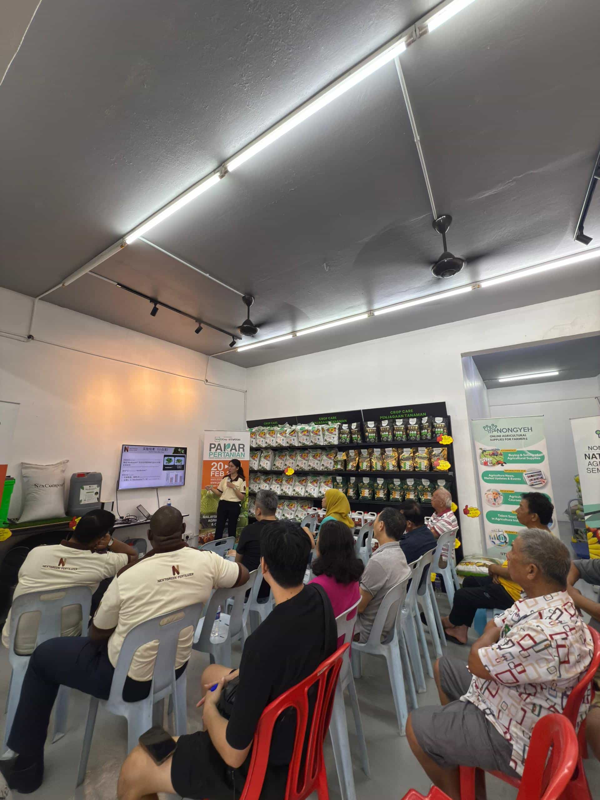Nextgreen Global Berhad hosted an industrial talk at NONGYEH SHOP in Jementah, Johor, titled “All-in-One Organic Biofertilizer for Sustainable Crop Care.” This event aimed to engage farmers, industry professionals, and potential stakeholders by educating them about the benefits of our innovative biofertilizers derived from pulp manufacturing byproducts.