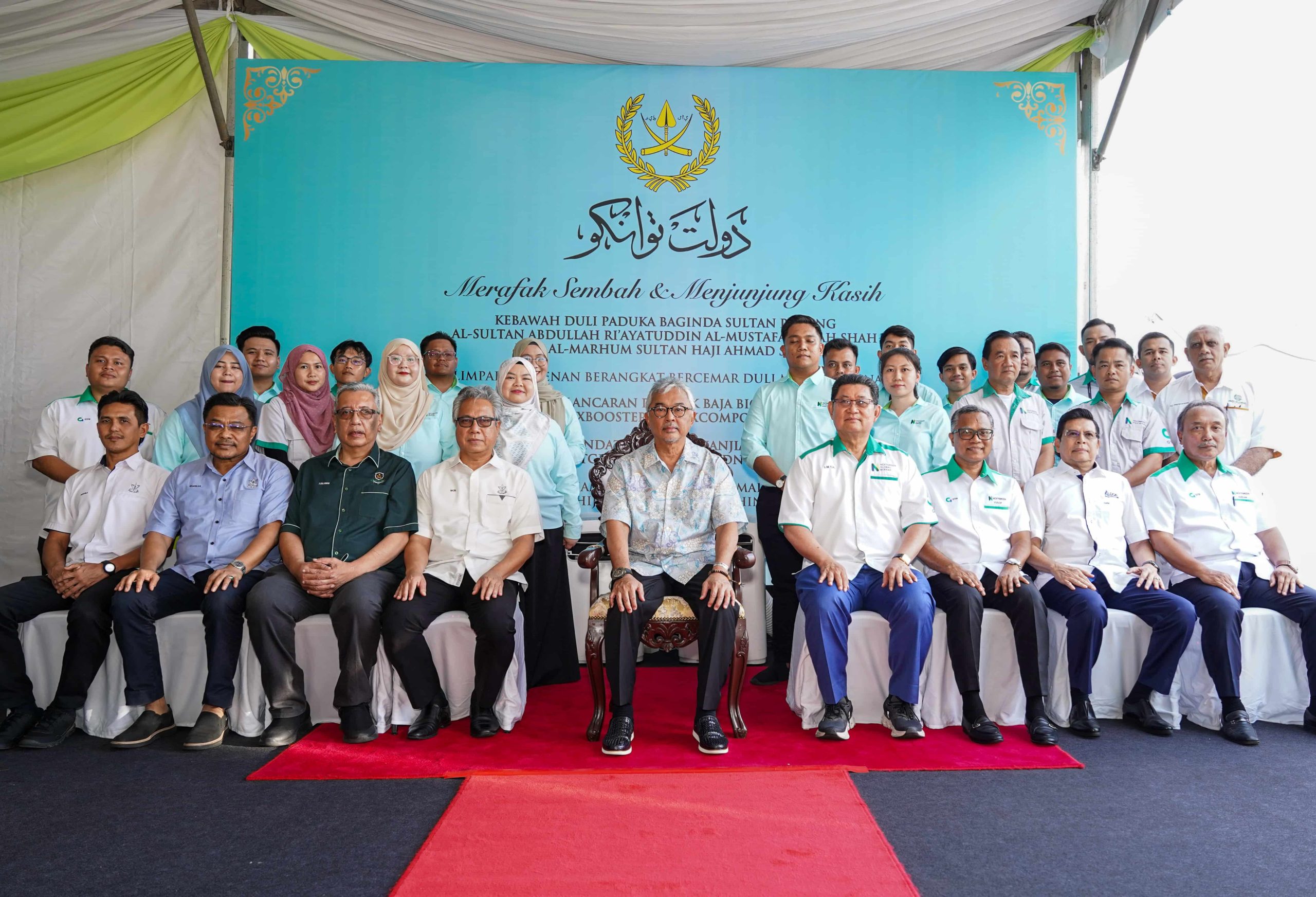 On 13 November 2025, His Royal Highness, Kebawah Duli Paduka Baginda Sultan of Pahang, visited Nextgreen’s Green Technology Park (GTP) in Pekan, Pahang. During the visit, His Royal Highness toured key areas of the park, including the processing facilities of Nextgreen Pulp & Paper and Nextgreen Fertilizer, where the company’s innovative products were showcased.