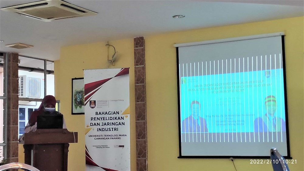 Nextgreen’s R&D and Production department visit to Universiti Teknologi Mara (UiTM) Pahang for NGPP-UiTM Collaboration Project at Pulp and Paper Laboratory, School of Wood Industry. The objectives of this visit are to demonstrate the various laboratory works for the paper production from empty fruit bunch (EFB) and kenaf as well as to discuss the collaborative research project “Green Technology for Optimum Paper Pulp Production from empty fruit bunch (EFB) and Kenaf”. It is expected that the outcome of this research will contribute to optimum various paper production from EFB and KENAF towards zero waste palm production through a green technology approach.